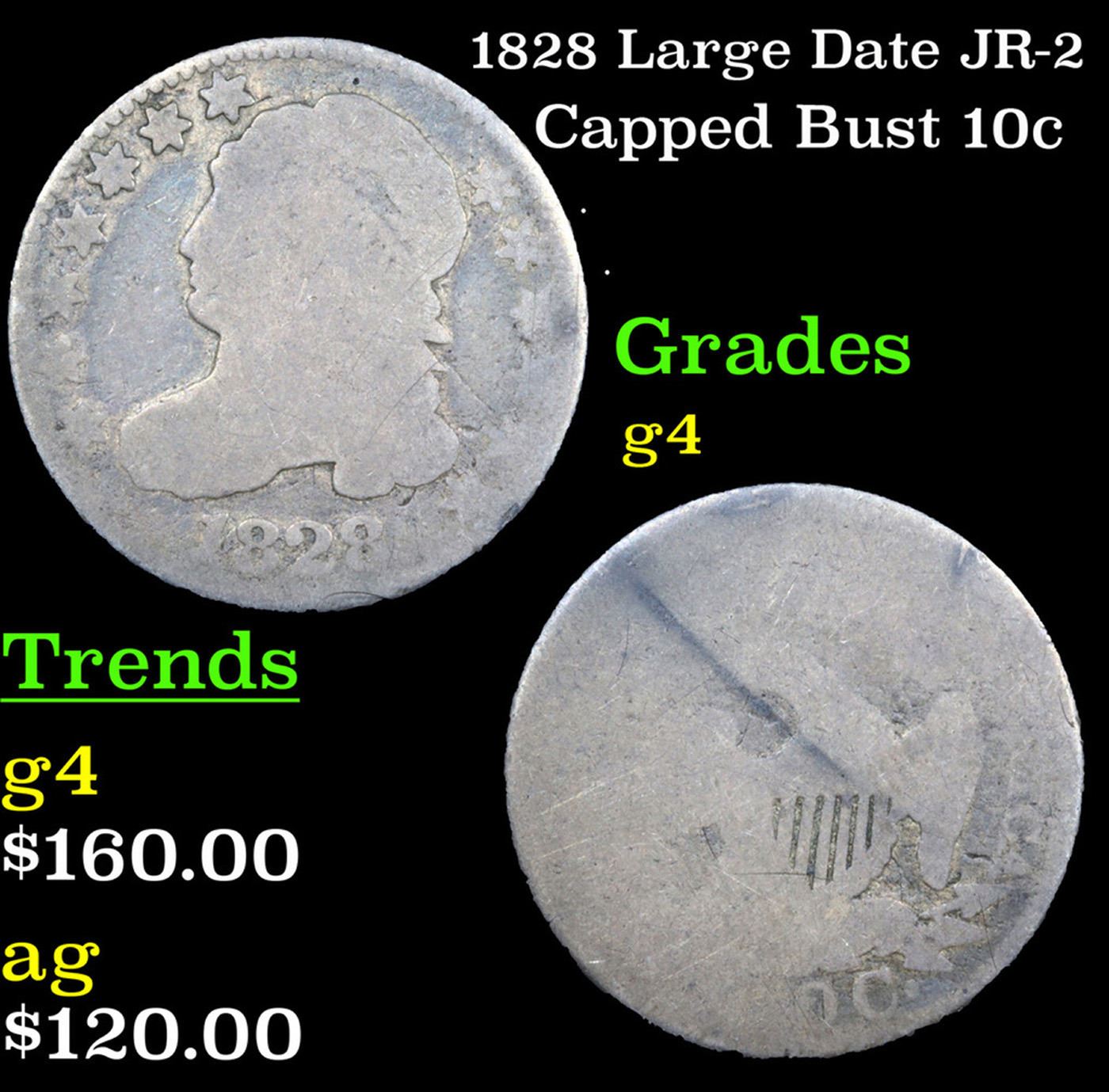1828 Large Date JR-2 Capped Bust Dime 10c Grades g, good.
