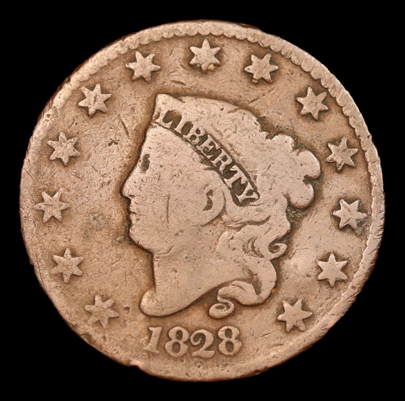 1828 Large Narrow Date Coronet Head Large Cent 1c Grades f+.