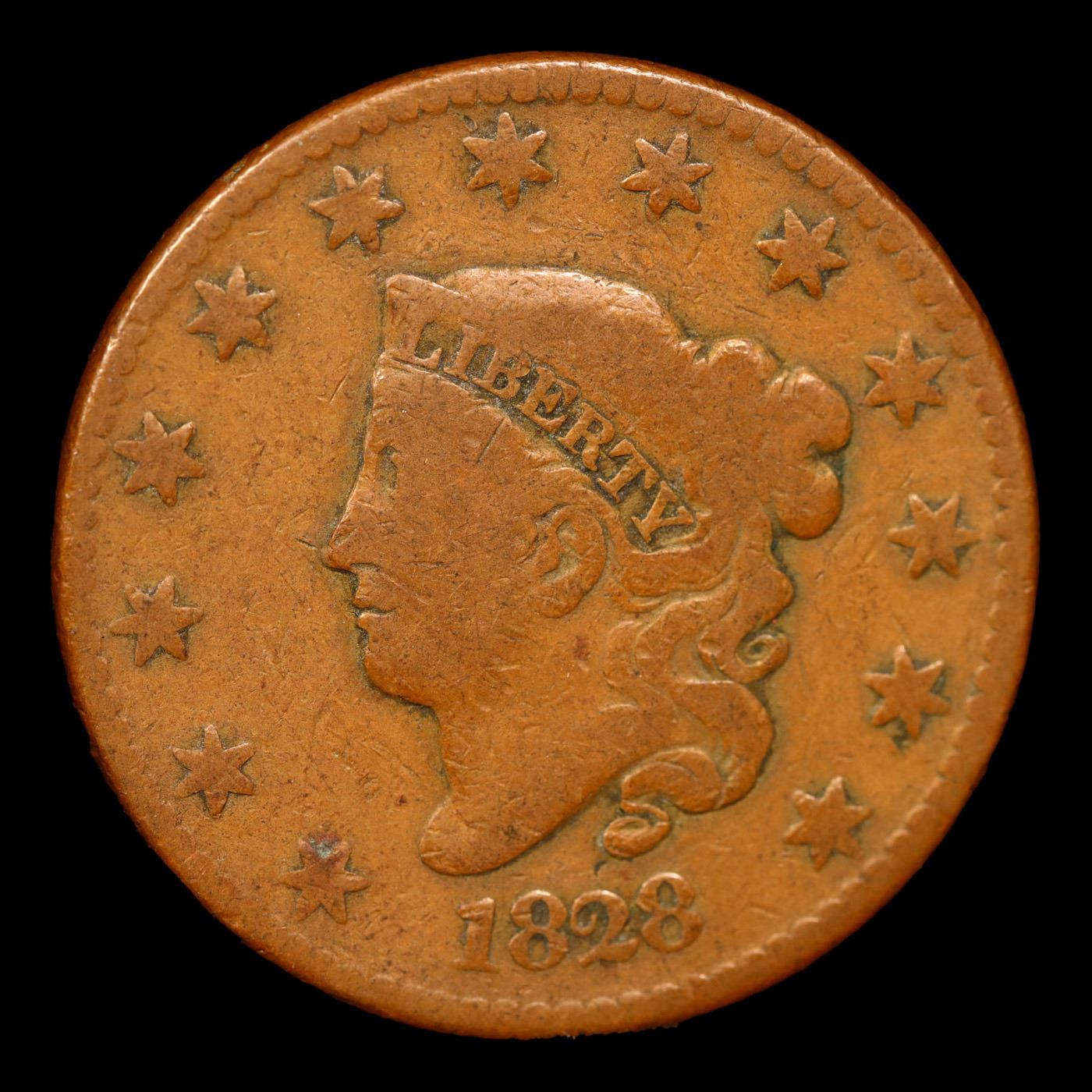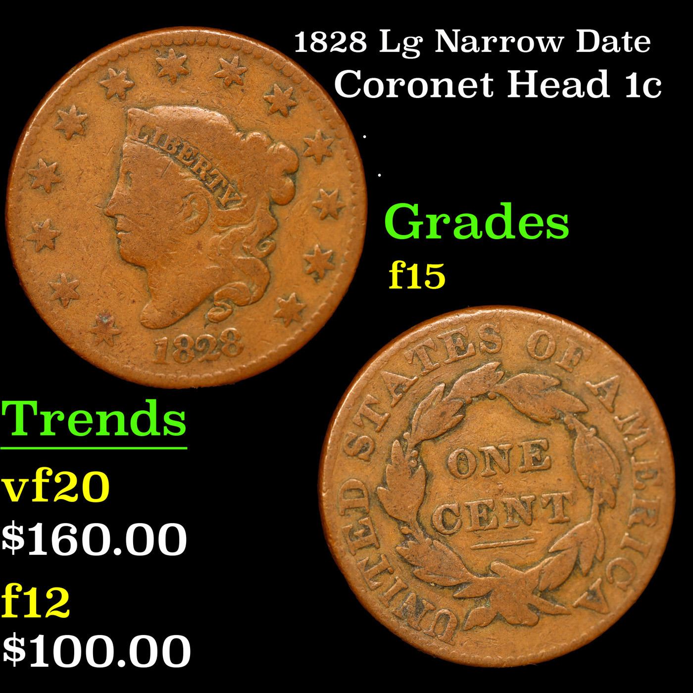 1828 Lg Narrow Date Coronet Head Large Cent 1c Grades f+.