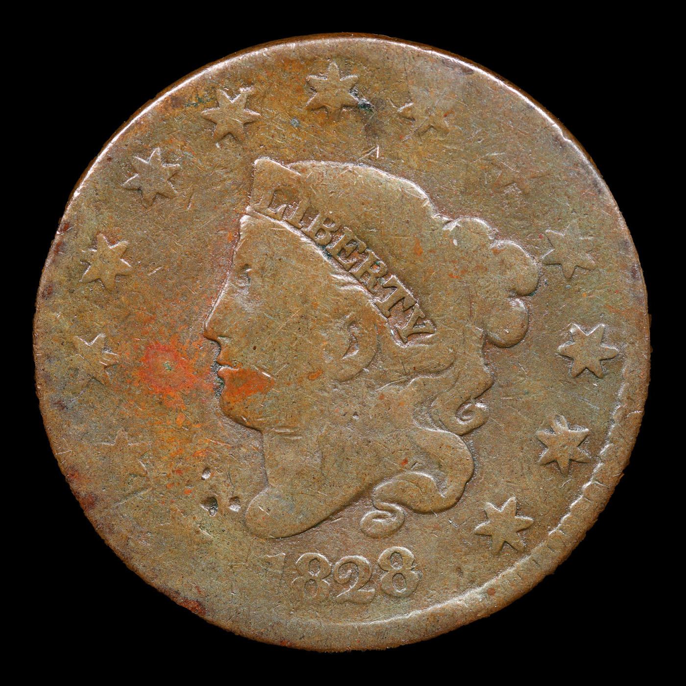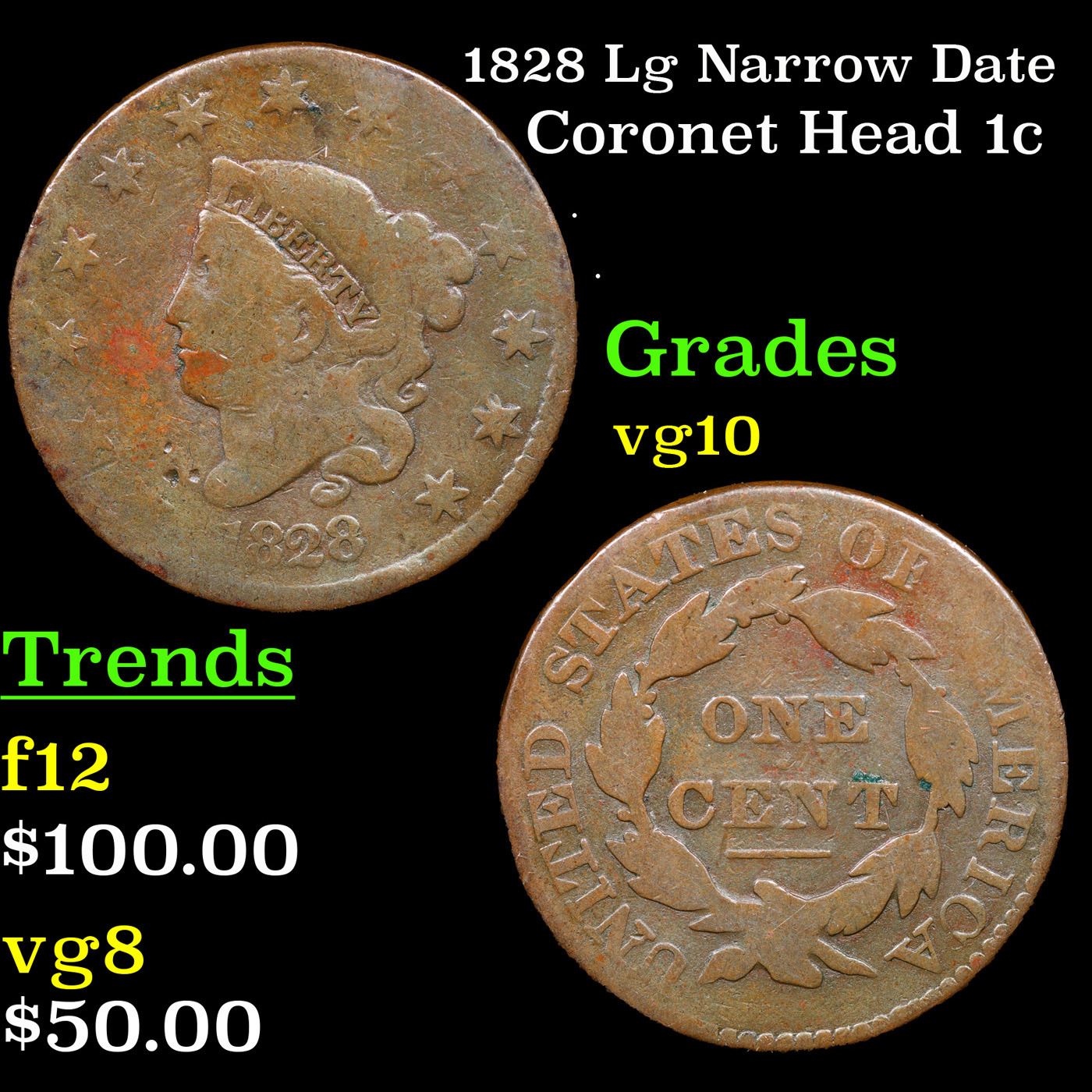 1828 Lg Narrow Date Coronet Head Large Cent 1c Grades vg+.