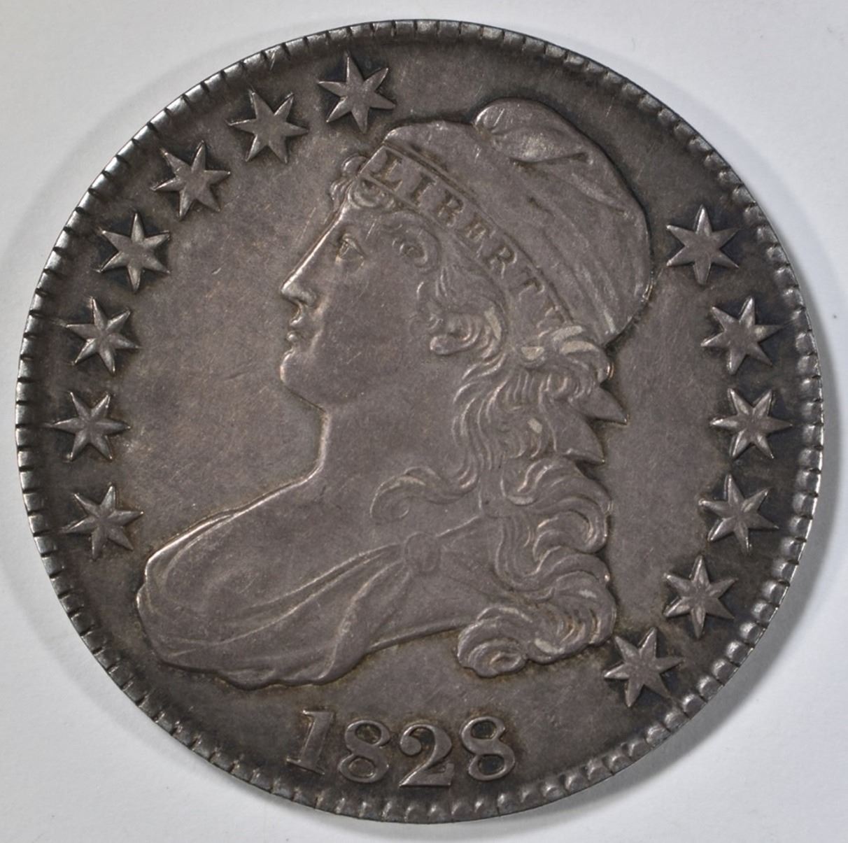 1828 SQ BASE 2, SM 8, SL BUST HALF DOLLAR AU/BU