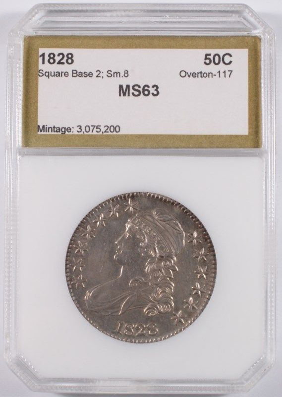 1828 SQUARE BASE 2, SMALL 8, BUST HALF PCI MS63