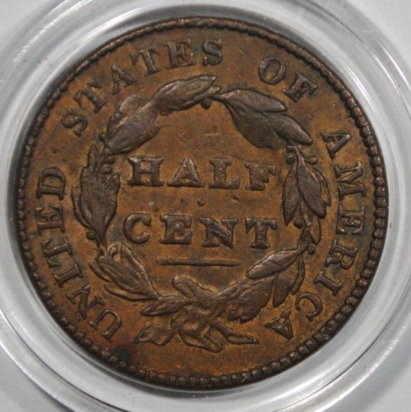 A NICE HIGH GRADE FOR THIS GREAT LOOKING HALF CENT, EST. $130.00 TO $150.00