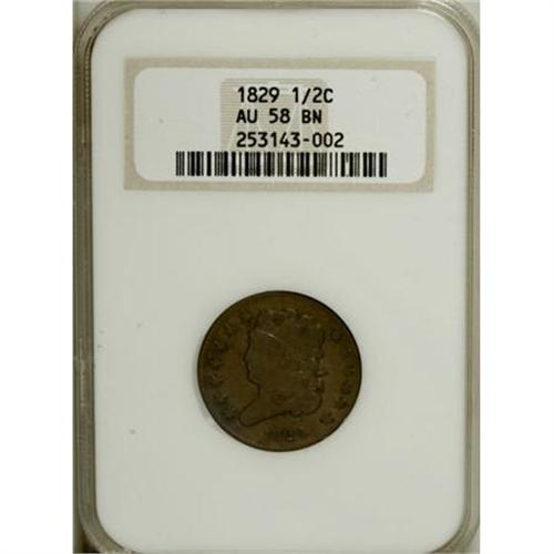 <B>1829 1/2 C AU58 NGC.</B></I> NGC Census: (33/113). PCGS Population (20/81). Mintage: 487,000. Numismedia Wsl. Price for NGC/PCGS coin in AU58: $167. (#1153)<BR><BR><B>Coin Engraver:</B> John Reich<BR><BR><b>Shipping:</b> Coins & Currency (<a target="_blank" href="http://www.heritageauctions.com/common/shipping.php">view shipping information</a>)