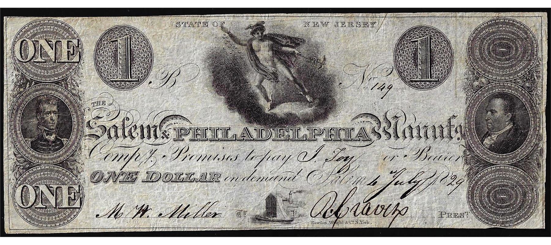 1829 $1 Salem & Philadelphia Manufacturing Compy Salem, NJ Obsolete Note