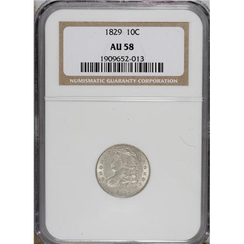 1829 10C Small 10C AU58 NGC. NGC Census: (31/133).