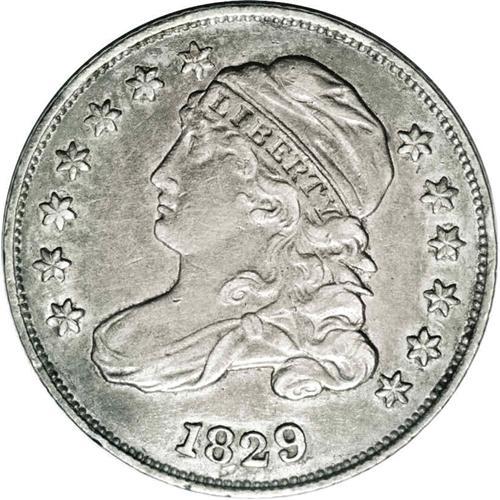 <B>1829<10C> Small 10C JR-7, R.1. Reiver state a.--Improperly Cleaned--NCS. AU Details.</B></I> Cleaned and retoned to a reflective mottled gray with residual hairlines present. Fairly well struck for the variety. Early die state as usually seen.<BR><I>Ex: Werl (October 1985).</B></I> Envelope Included.