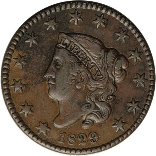 <B>1829<1C> Large Letters. N-8, R.1--Environmental Damage--NCS. XF Details. VF20 EAC.</B></I> Short 1 in date with the first star near the bust tip. An area of somewhat rough surface spans the obverse field between 9 and 12 o'clock, the reverse has lesser verdigris near the ERI in AMERICA. Smooth tan color occupies the lower left obverse and slivers of the reverse field.<BR><I>Ex: George Ramont (2/3/1969).</B></I> Envelope Included.