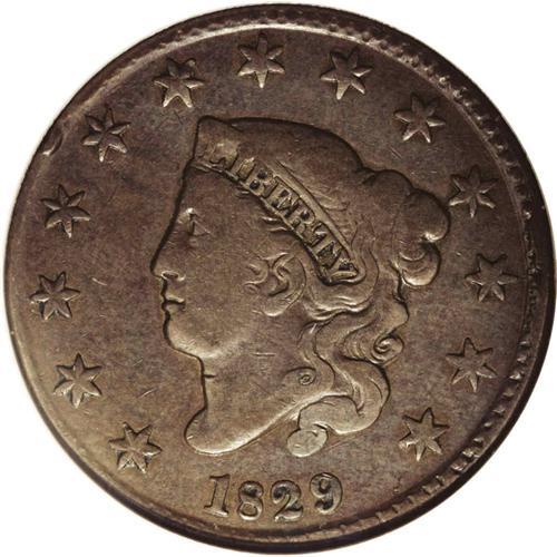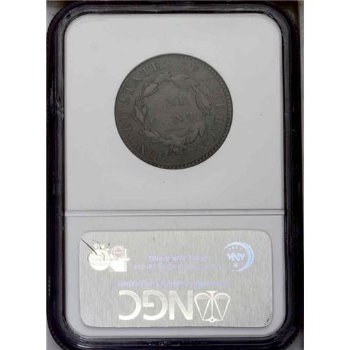 <B>1829<1C> N-4, High R.4. Large Letters. Fine 12 NGC and EAC.</B></I> Terminal die state. The obverse has a rim break over star 11, extending nearly to stars 10 and 12. Bluntly struck, typical for the variety. Attractive medium brown with olive and tan. A few minor rim bruises but no other defects.<BR><I>Ex: Chris Victor-McCawley; Dennis Mendelson; Superior (2/3/1991), lot 381.</B></I> Envelope Included.