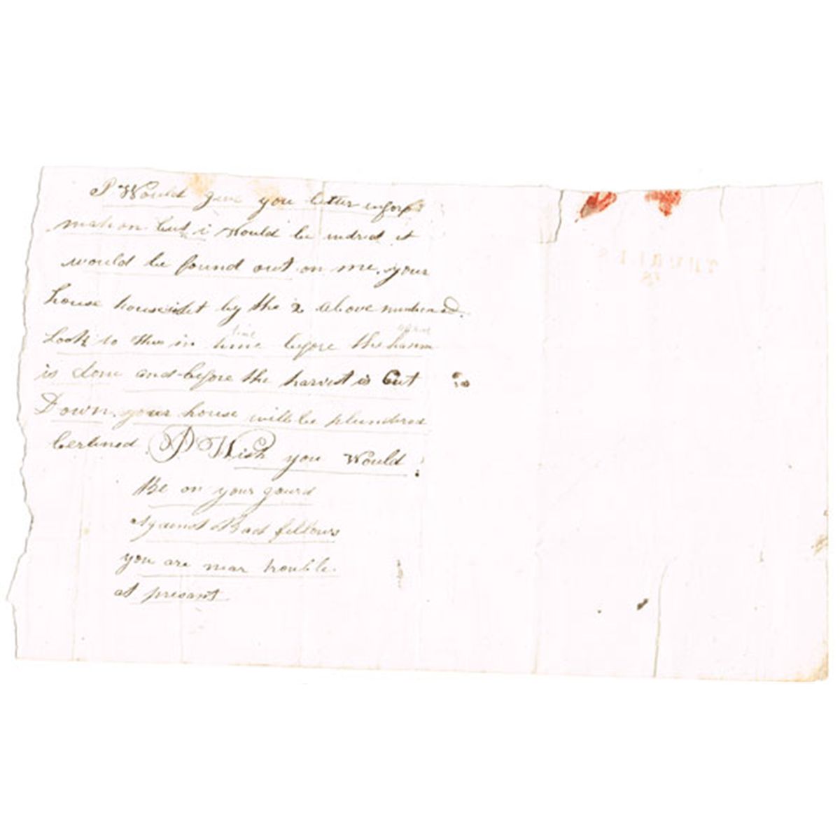 1829-33: Kilkenny and Tipperary Tithe War letters collection including anonymous warning letter