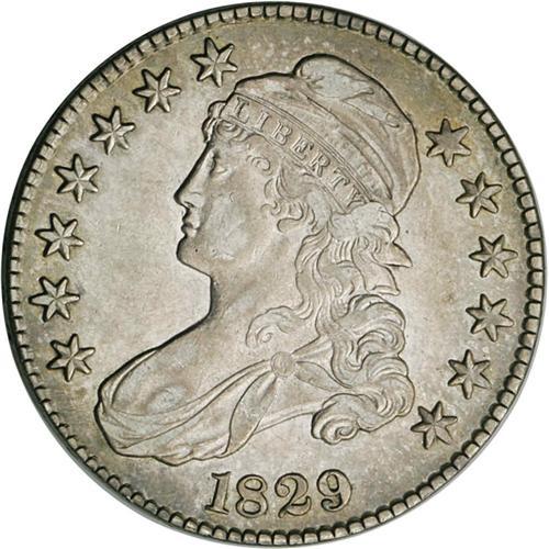 1829 50C AU53 NGC. O-108, R.2. This is an early die st 1829[50C] Small Letters AU53 NGC.