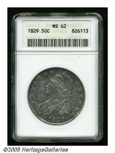 <B>1829<50C> MS62 ANACS.</B></I> O-103, R.1. Sharply struck with frosty luster and iridescent toning. An attractive example with excellent surfaces for the grade.