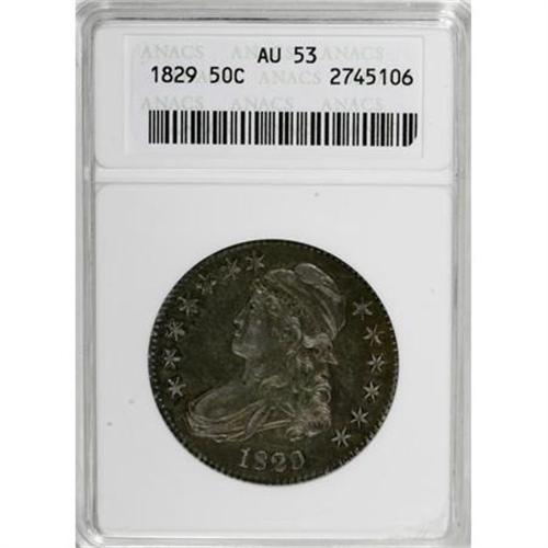 <B>1829 50C AU53 ANACS.</B></I> NGC Census: (59/1361). PCGS Population (60/461). Mintage: 3,712,156. Numismedia Wsl. Price for NGC/PCGS coin in AU53: $233. (#6154)<BR><BR><B>Coin Engraver:</B> John Reich<BR><BR><b>Shipping:</b> Coins & Currency (<a target="_blank" href="http://www.heritageauctions.com/common/shipping.php">view shipping information</a>)