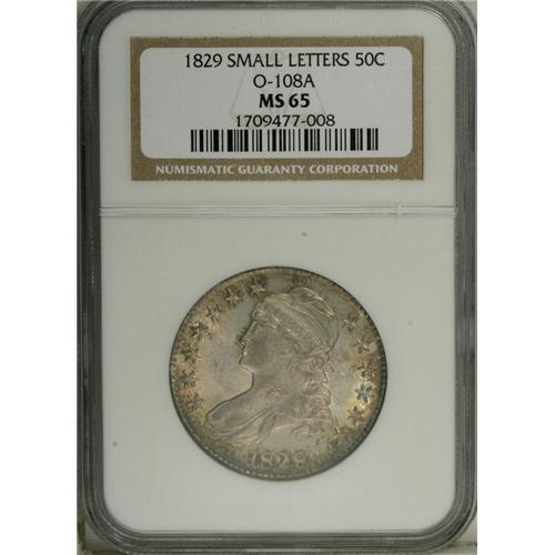 1829 50C Small Letters MS65 NGC. O-108a, R.3. Lovely g