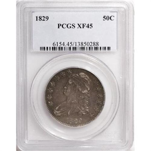 <B>1829 50C Small Letters XF45 PCGS.</B></I> PCGS Population (88/624). NGC Census: (79/4127). Mintage: 3,712,156. Numismedia Wsl. Price for NGC/PCGS coin in XF45: $126. (#6154)<BR><BR><B>Coin Engraver:</B> John Reich<BR><BR><b>Shipping:</b> Coins & Currency (<a target="_blank" href="http://www.heritageauctions.com/common/shipping.php">view shipping information</a>)