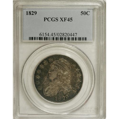 <B>1829 50C XF45 PCGS.</B></I> O-104a, R-3. PCGS Population (75/602). NGC Census: (74/634). Mintage: 3,712,156. Numismedia Wsl. Price for NGC/PCGS coin in XF45: $126. (#6154)<BR><BR><b>Shipping:</b> Coins & Currency (<a target="_blank" href="http://www.heritageauctions.com/common/shipping.php">view shipping information</a>)