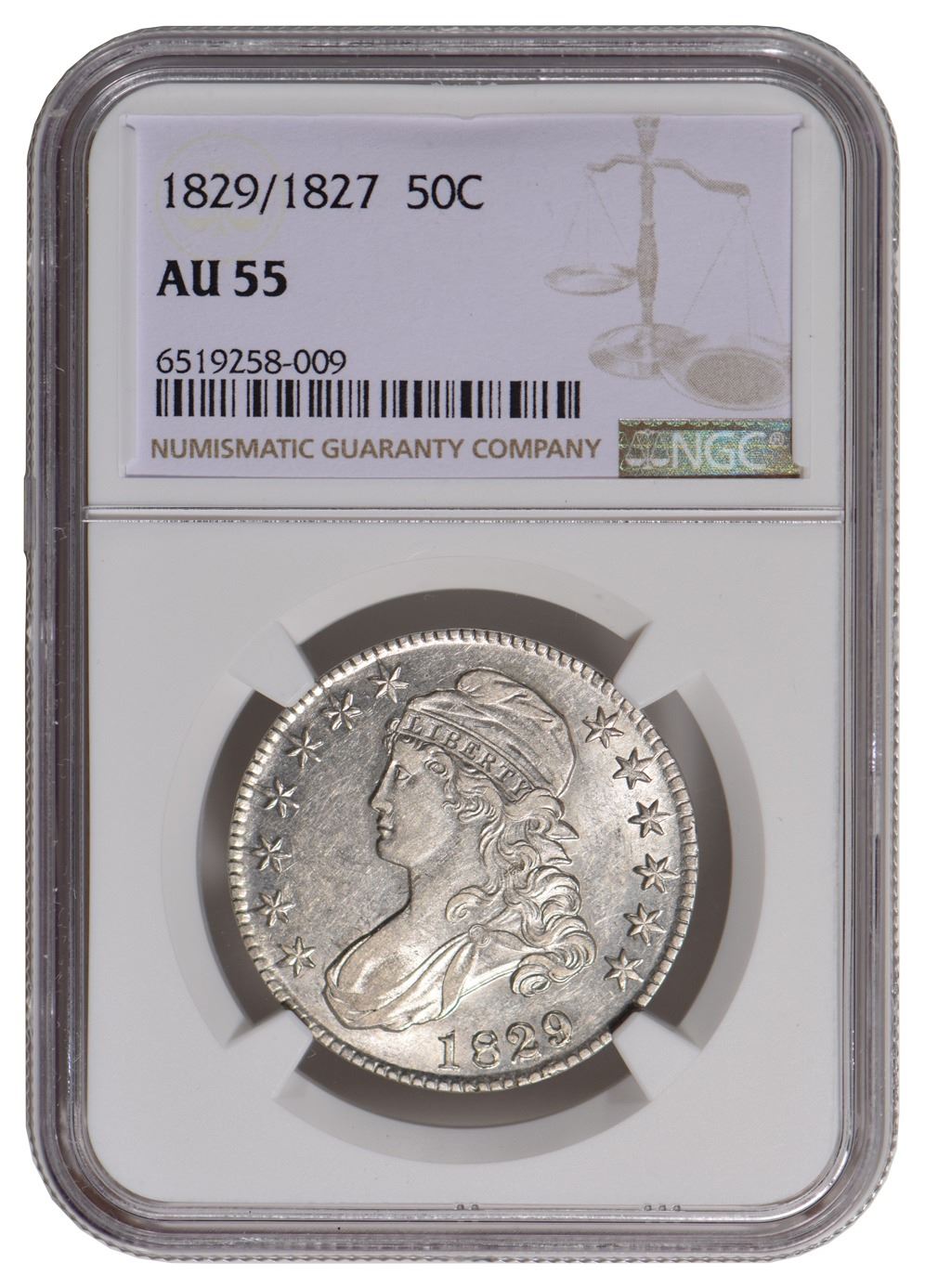 One 1829/7 Capped Bust Half Dollar NGC AU55.