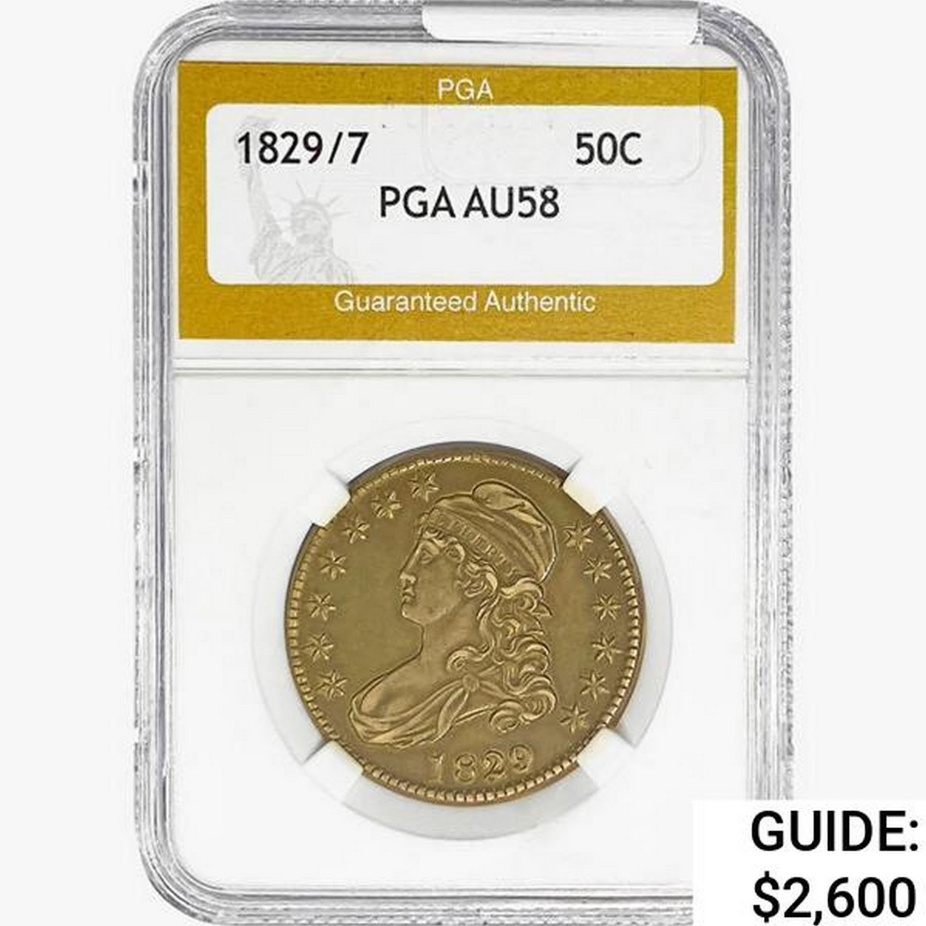 1829/7 Capped Bust Half Dollar PGA AU58