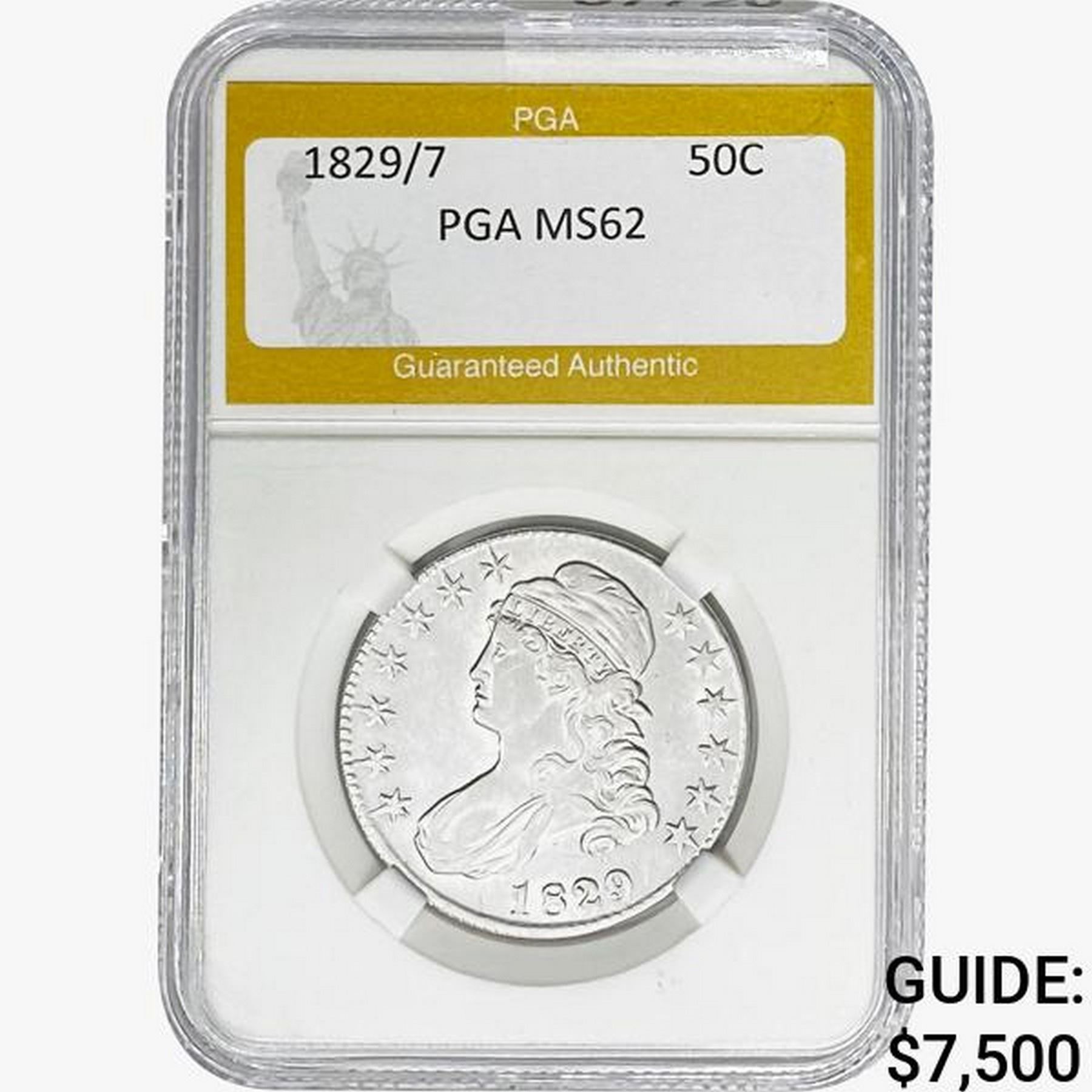 1829/7 Capped Bust Half Dollar PGA MS62