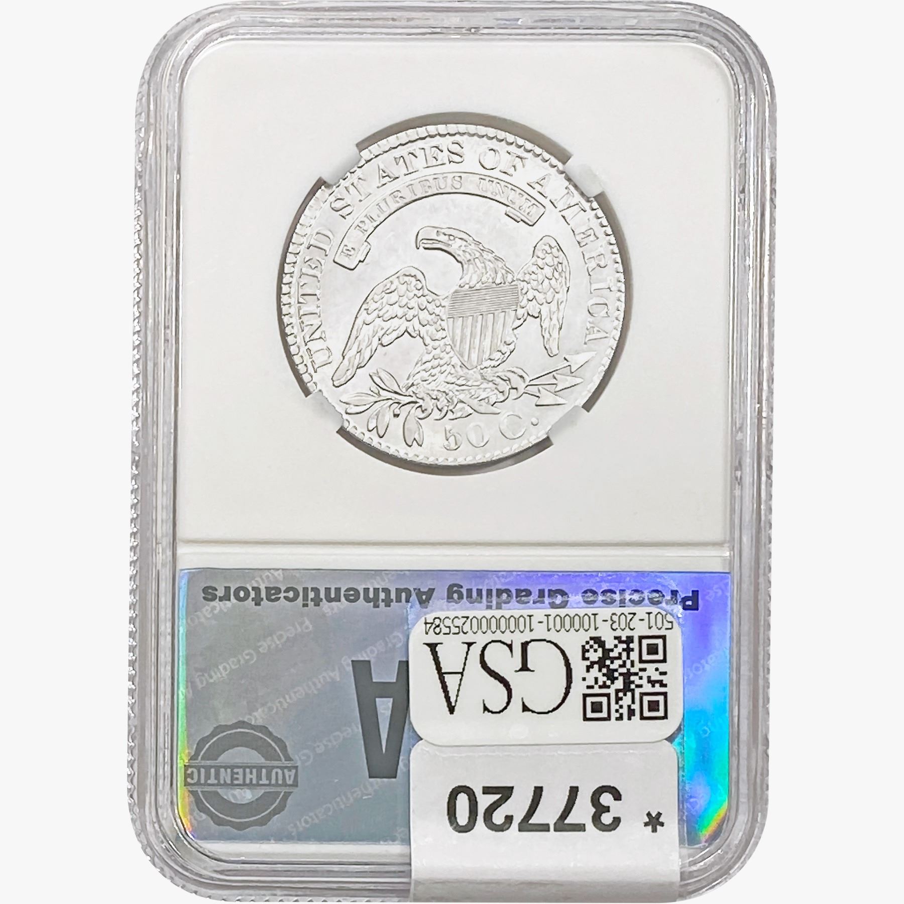 COINS AND CURRENCY LISTED IN GSA’S CATALOG AS GRADED AND ENCAPSULATED BY PCGS, NGC, ANACS, ICG, PCGS CURRENCY, PMG, PCGS BANKNOTE GRADING, CMC OR ANY OTHER THIRD-PARTY GRADING SERVICE ARE LIKEWISE SOLD “AS-IS” EXCEPT AS EXPRESSLY SET FORTH HEREIN. ALL THIRD-PARTY GRADING SERVICE GUARANTEES, INCLUDING AUTHENTICITY, ARE THE SOLE RESPONSIBILITY OF THE THIRD-PARTY GRADING SERVICE AND NOT WARRANTIES OR GUARANTEES OF GSA. BIDDERS SHOULD CONTACT THESE THIRD-PARTY GRADING SERVICES DIRECTLY WITH RESPECT TO ANY CLAIMS OR QUESTIONS THEY MAY HAVE CONCERNING THEIR GUARANTEES AND WARRANTIES. BIDDERS ACKNOWLEDGE AND AGREE THAT AUCTIONEER IS NOT BOUND BY OR LIABLE FOR ANY OPINION OR CERTIFICATION BY ANY THIRD-PARTY GRADING SERVICE. REMOVAL OF A PRODUCT FROM ITS PROTECTIVE CASING OR HOLDER OR ALTERATION OF ANY COIN HOLDER WAIVES ALL RIGHTS CONCERNING THE PRODUCT CONTAINED THEREIN.