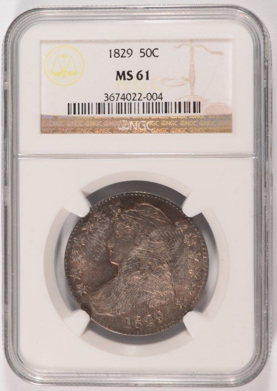 1829 BUST HALF DOLLAR, NGC MS-61 PRETTY COLORS, VERY UNDER-GRADED IN OUR OPINION
