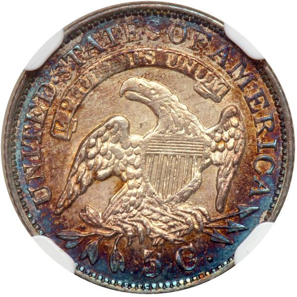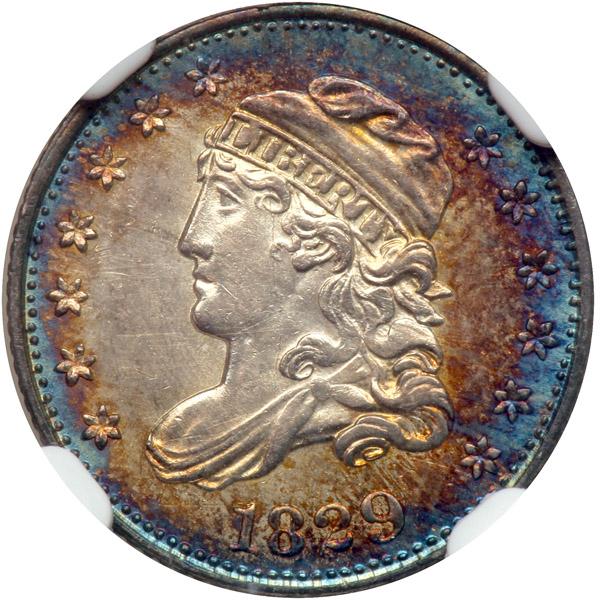 1829. NGC graded MS-62. Beautiful blue and golden toning around the edges of both sides.