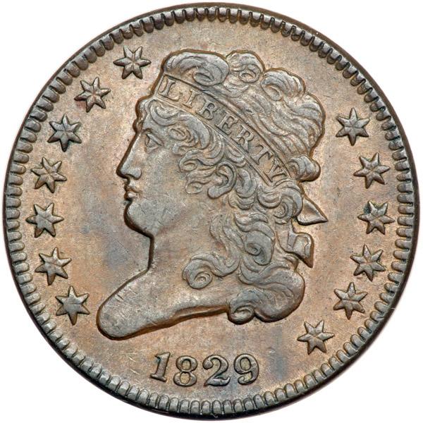 1829 C-1 R1 EF45. Frosty chocolate and steel with lighter steel brown and tan in protected areas. No defects. Excellent eye appeal for the grade. E-MDS.
