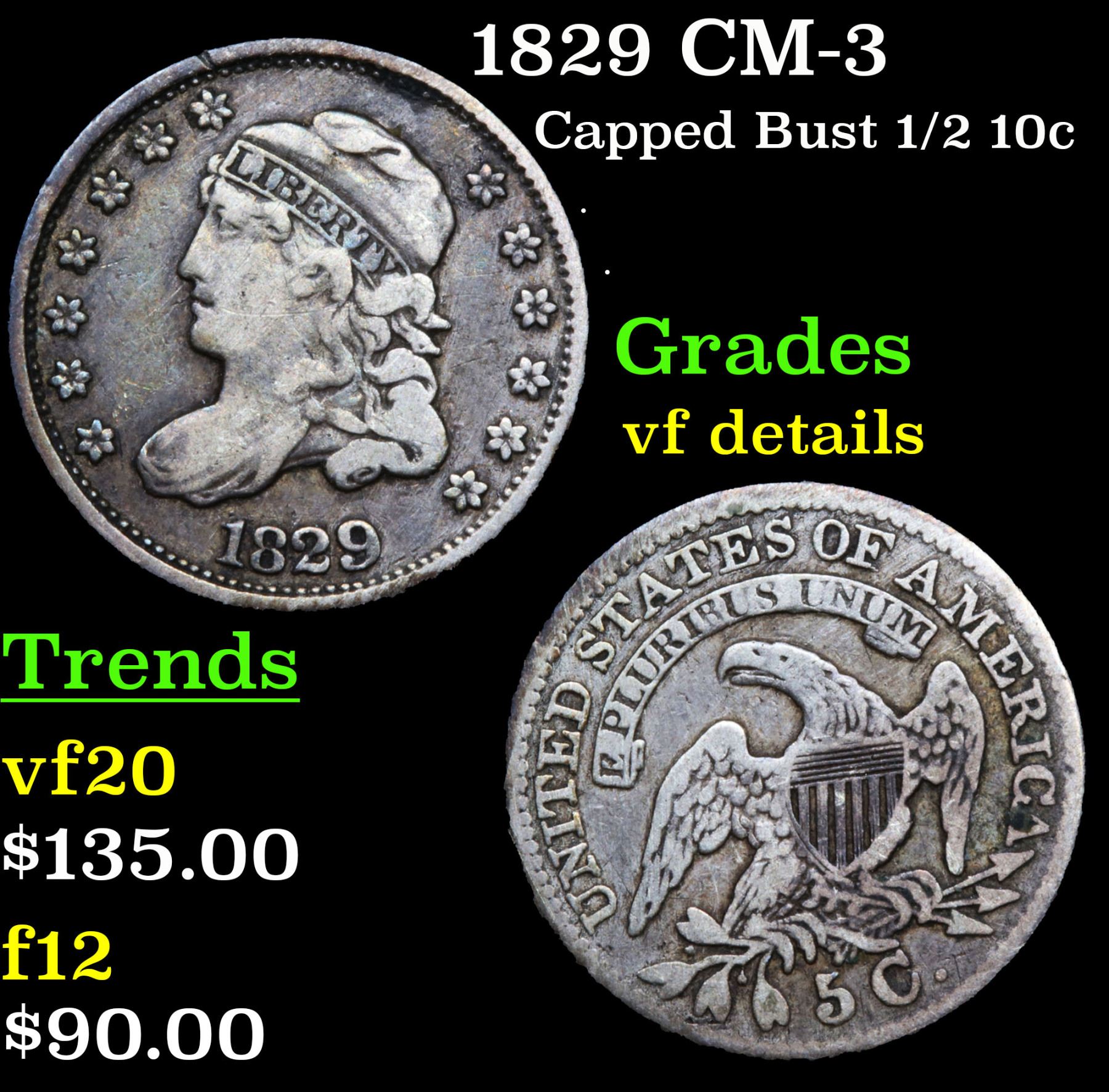 1829 CM-3 Capped Bust Half Dime 1/2 10c Grades vf details.