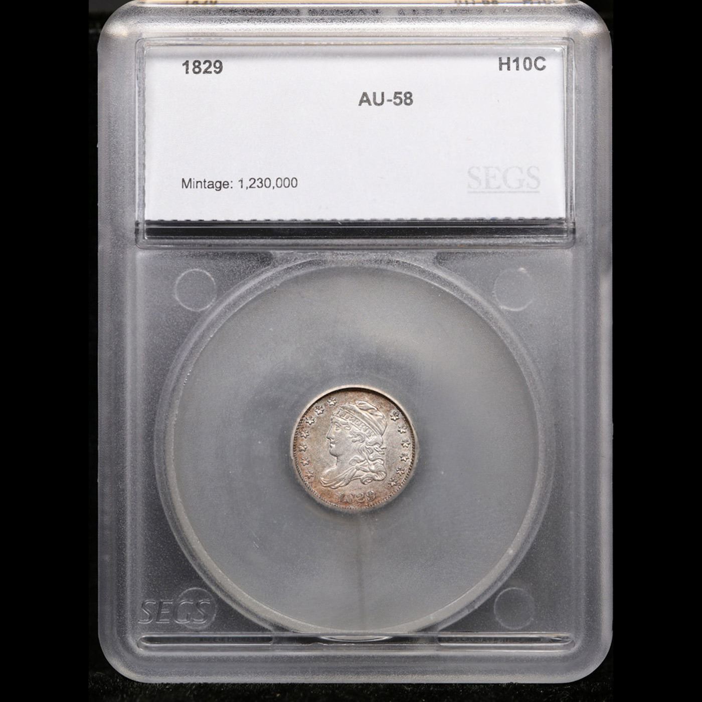 1829 Capped Bust Half Dime 1/2 10c Graded au58 By SEGS.