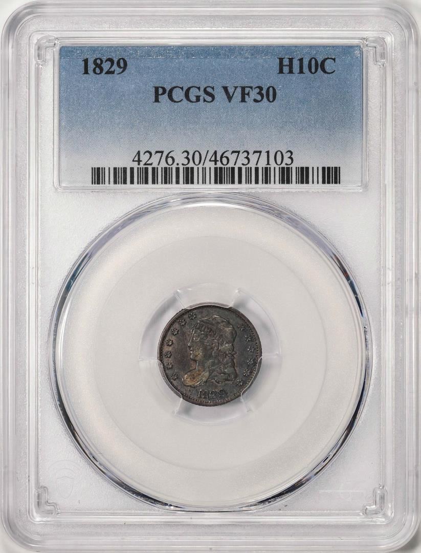 One 1829 Capped Bust Half Dime Coin PCGS VF30. PCGS Graded.