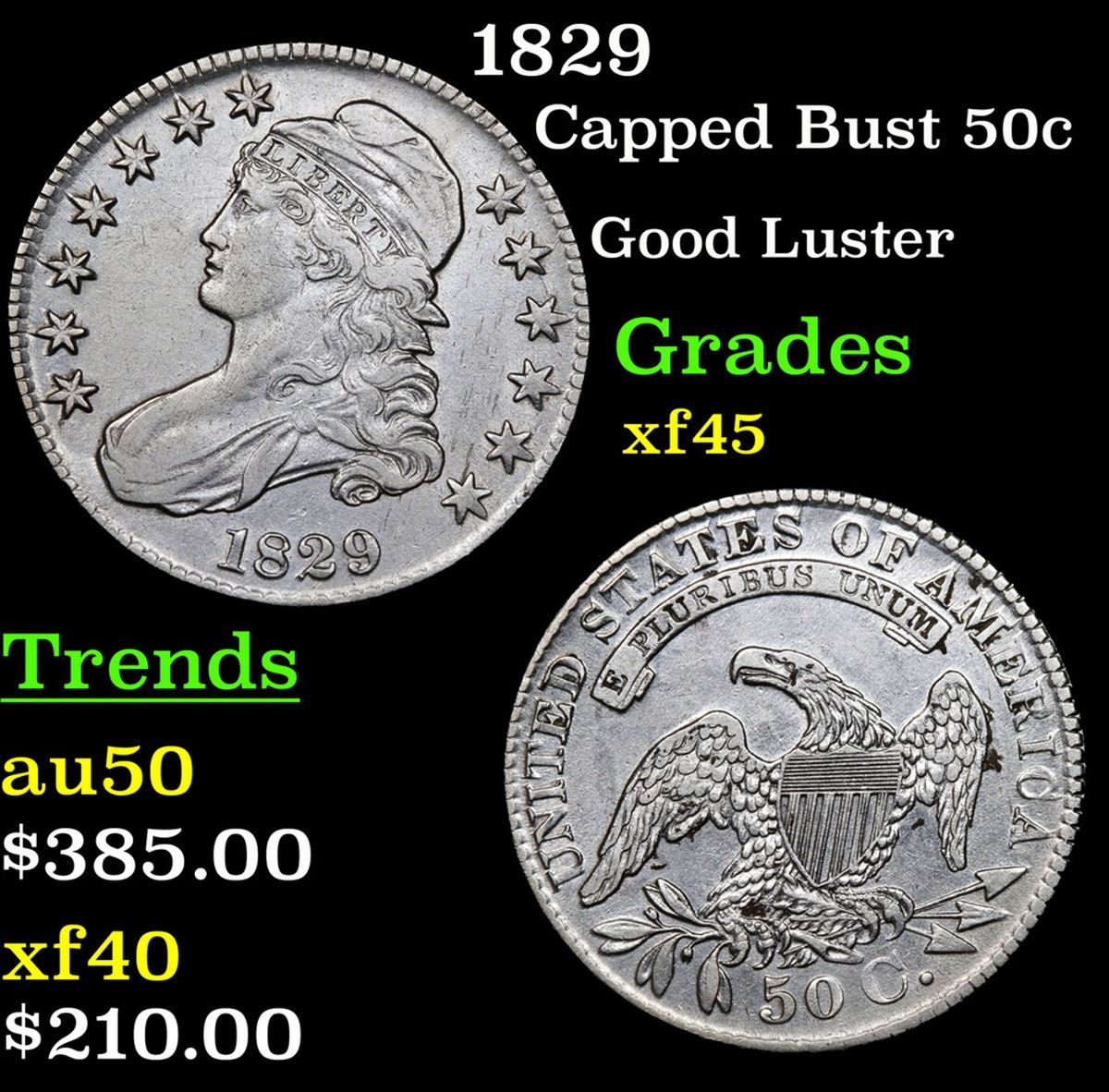 1829 Capped Bust Half Dollar 50c Grades xf+.
