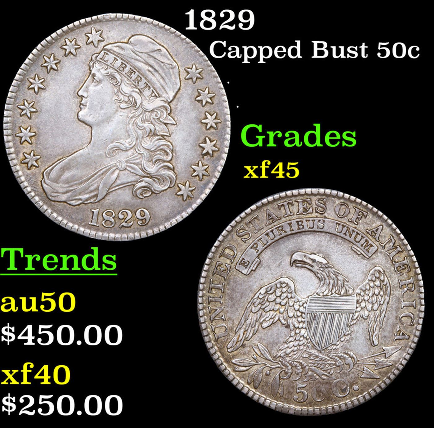 1829 Capped Bust Half Dollar 50c Grades xf+.