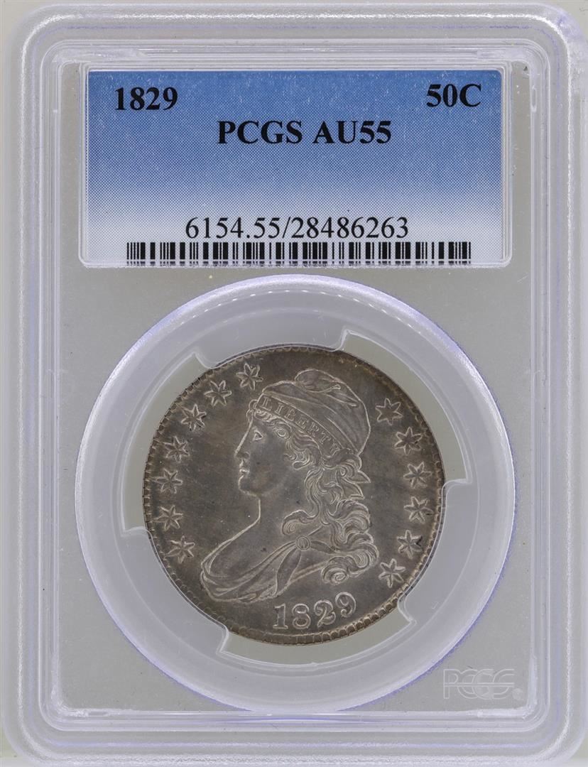One 1829 Capped Bust Half Dollar Coin PCGS AU55. PCGS Graded.