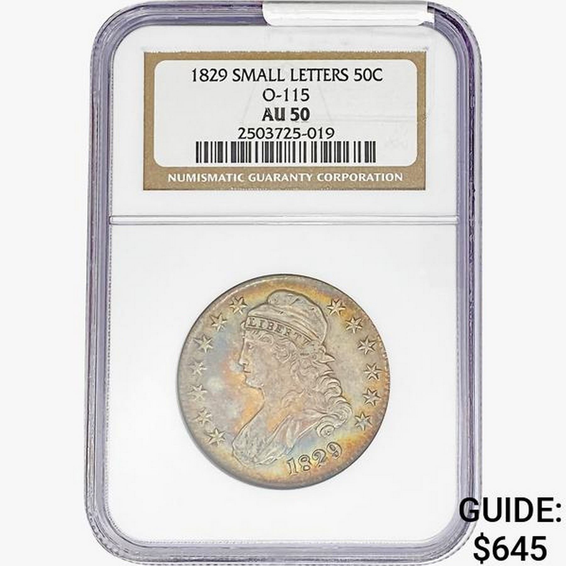 1829 Capped Bust Half Dollar NGC AU50 O-115 Sm Letters