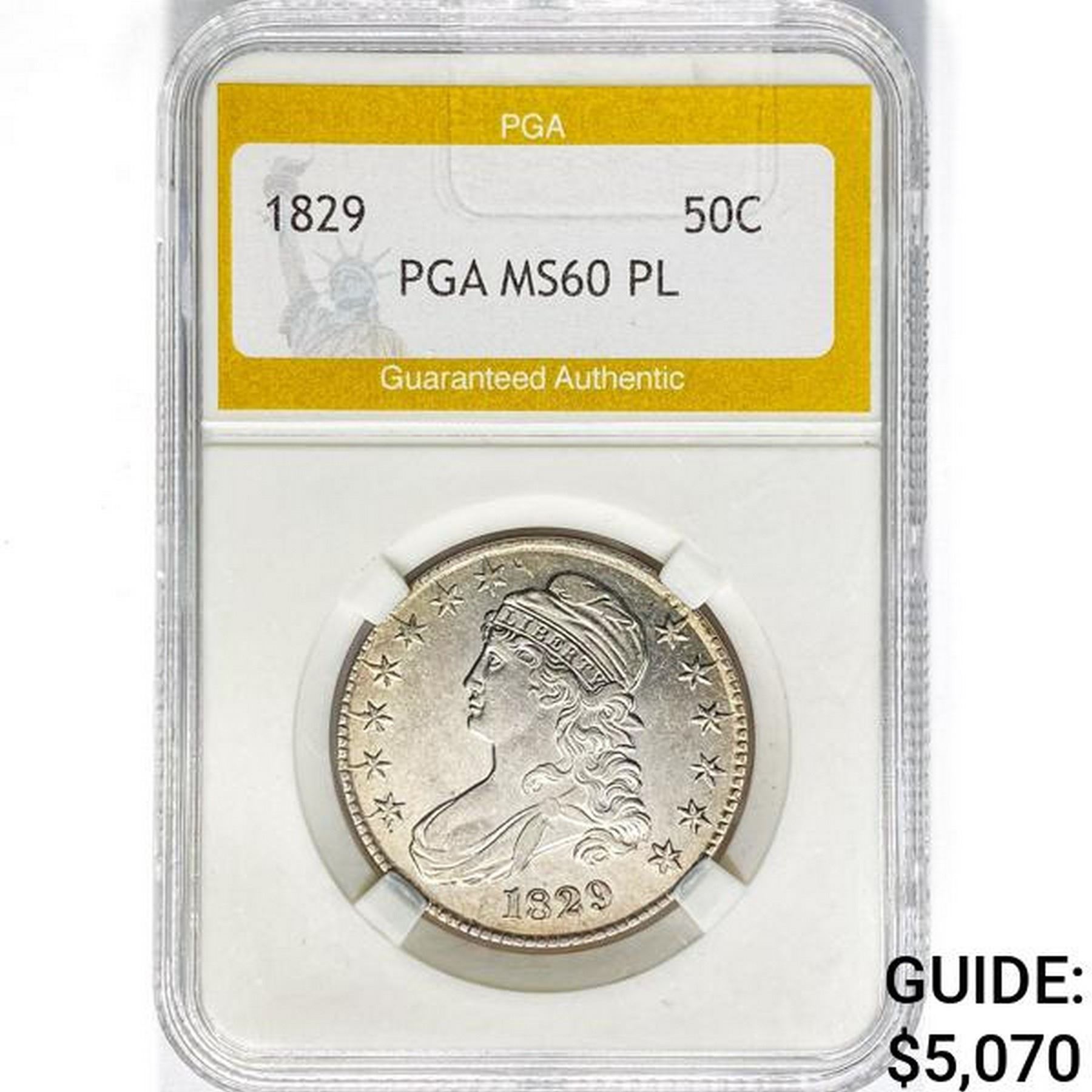 1829 Capped Bust Half Dollar PGA MS60 PL