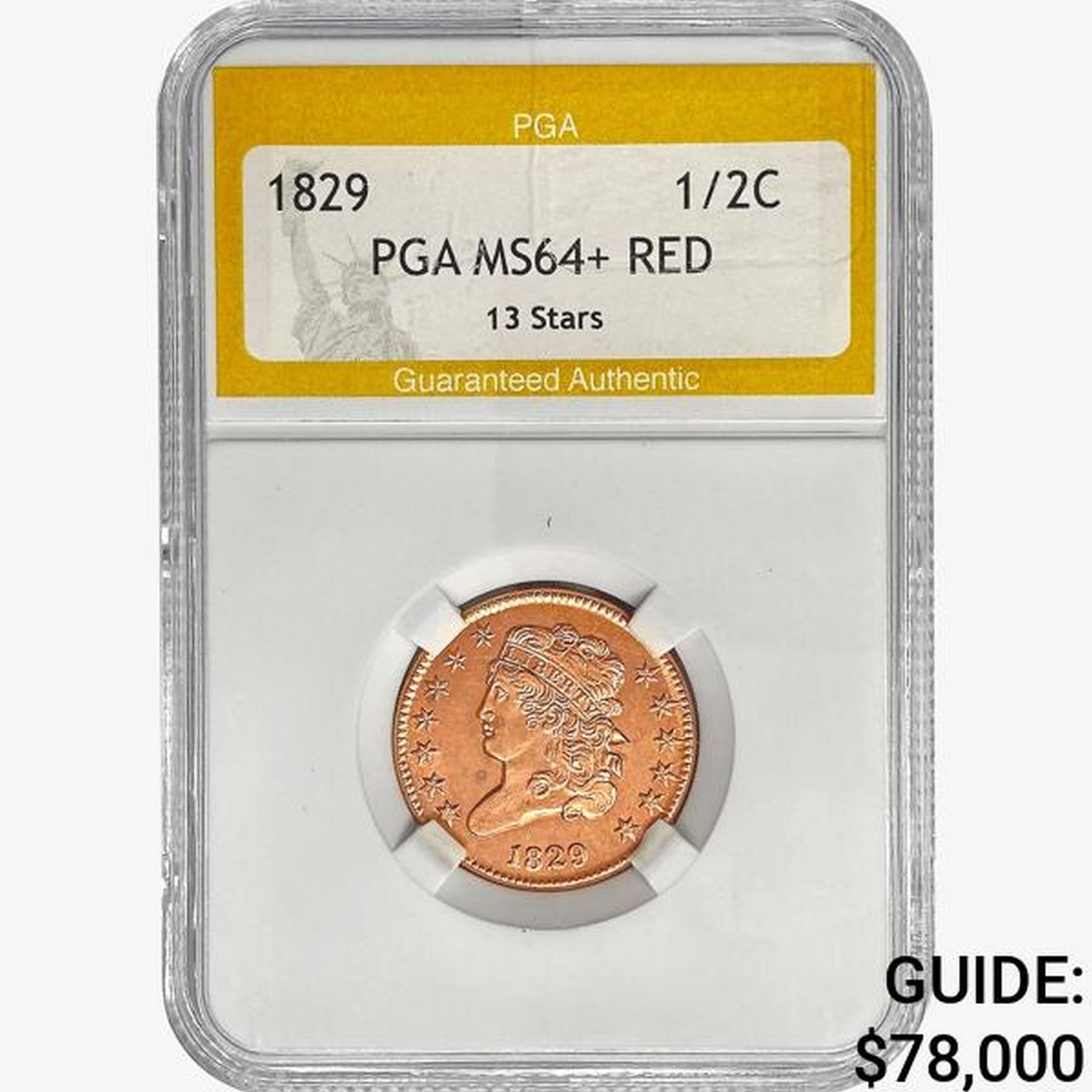 1829 Classic Head Half Cent PGA MS64+ RED 13 Stars