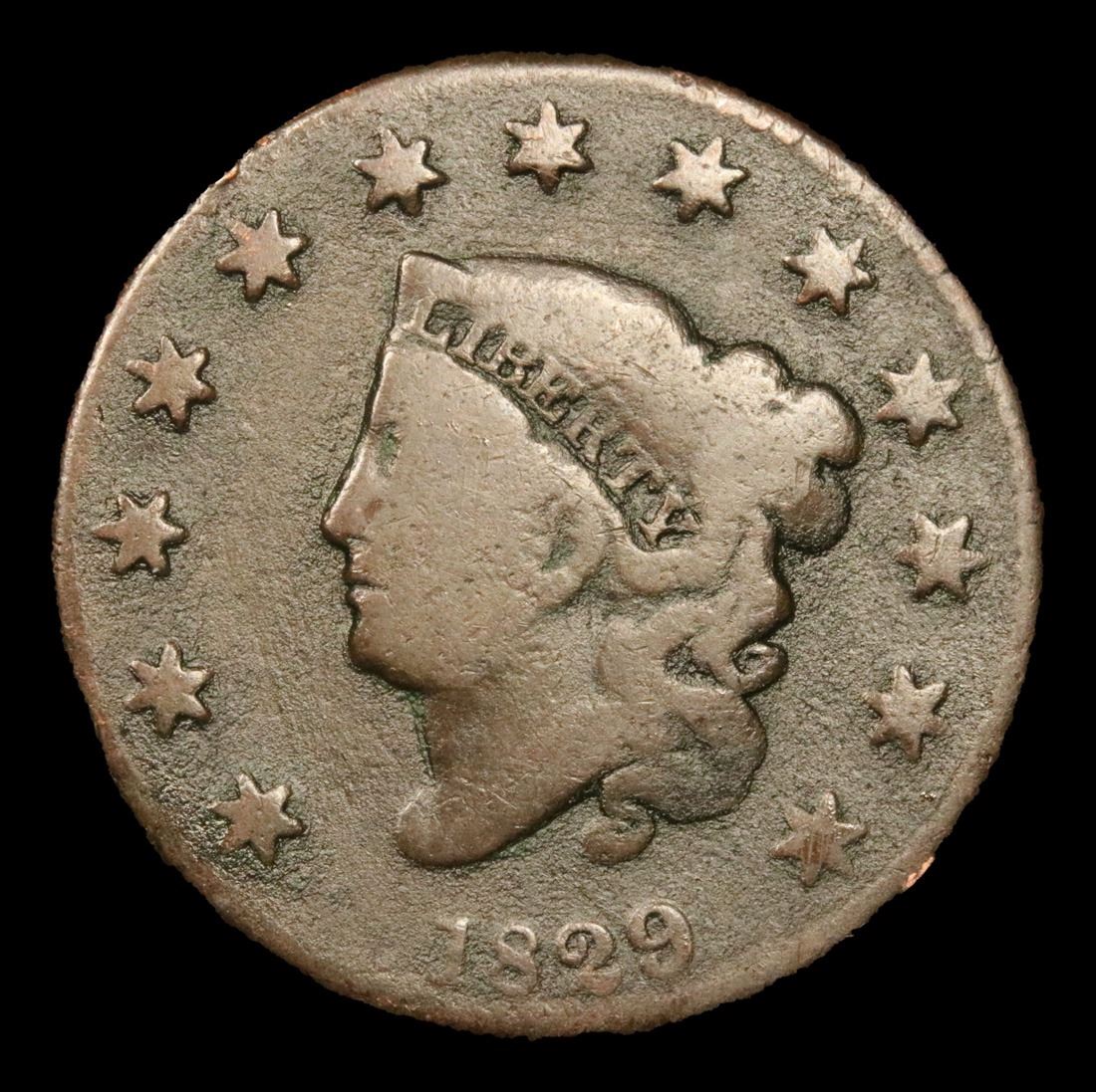1829 . . Coronet Head Large Cent 1c Grades f details.