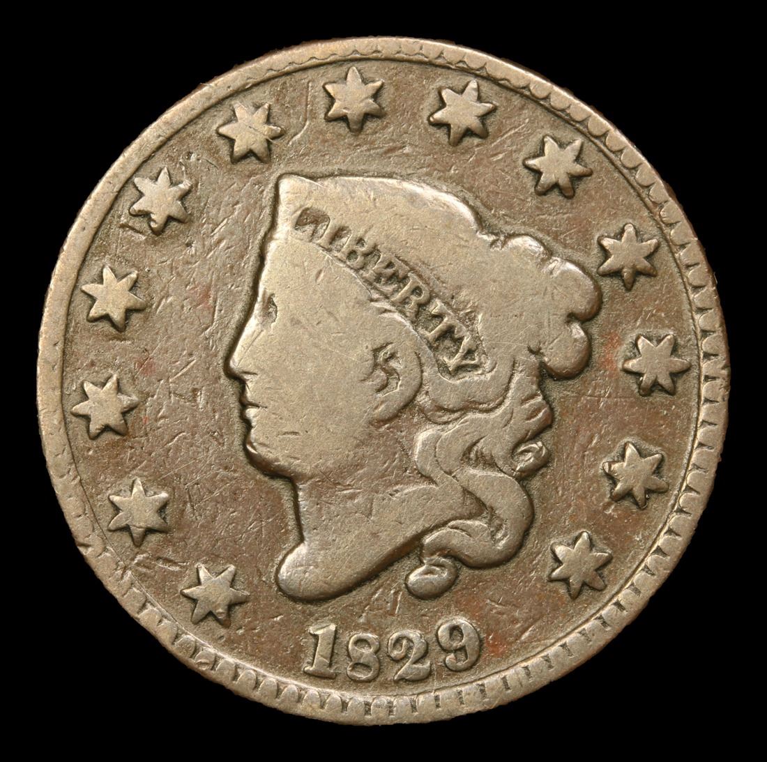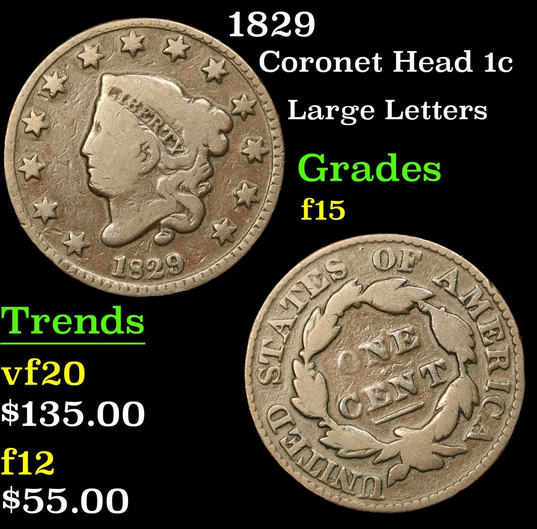 1829 Large Letters . Coronet Head Large Cent 1c Grades f+.