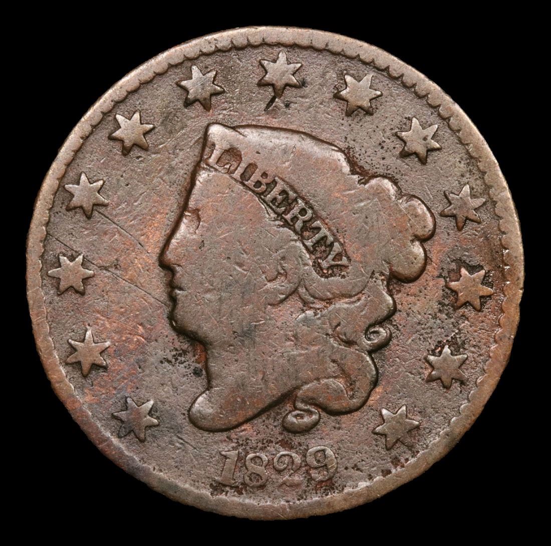 1829 Large Letters . Coronet Head Large Cent 1c Grades f+.