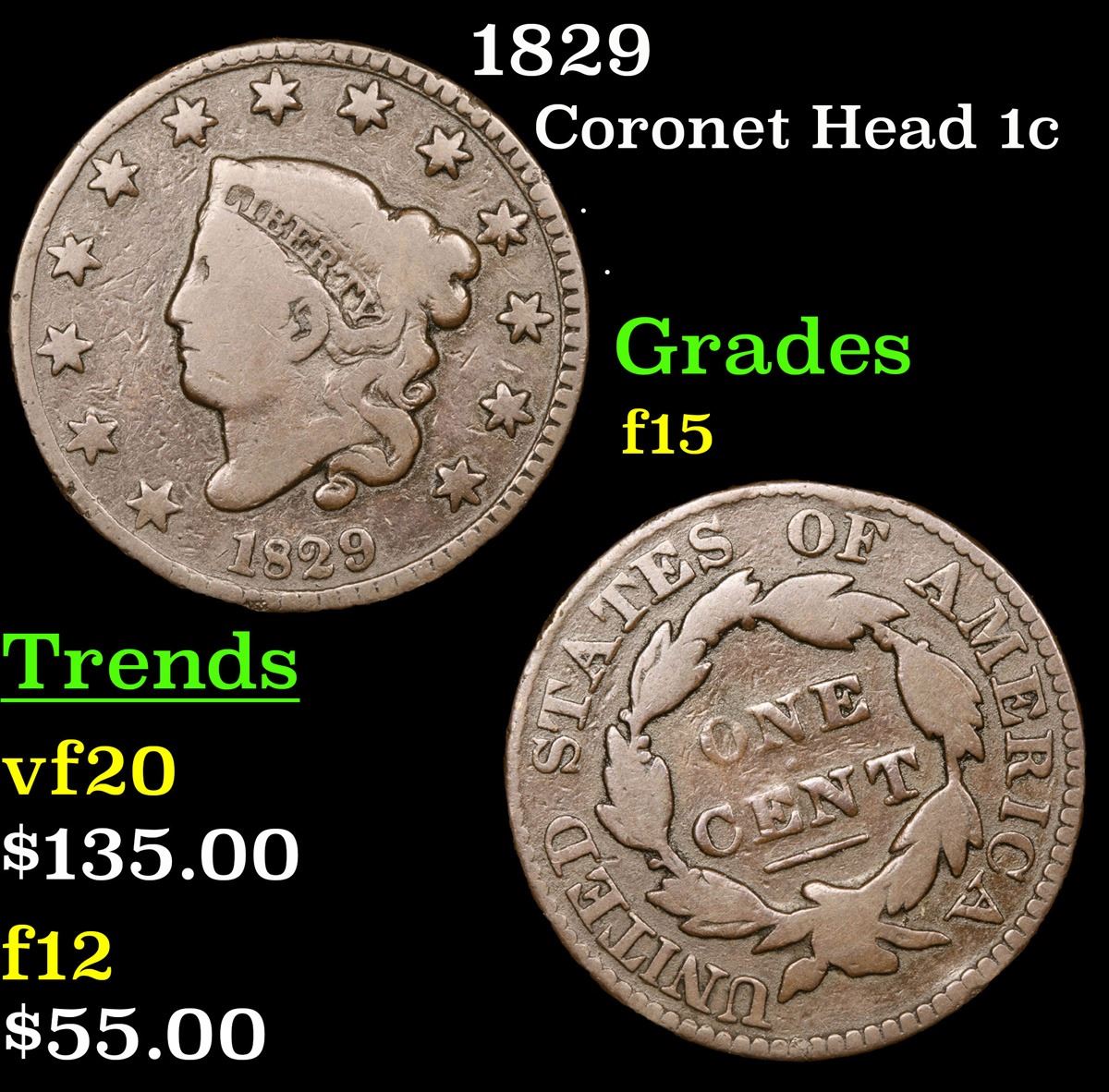 1829 . . Coronet Head Large Cent 1c Grades f+.