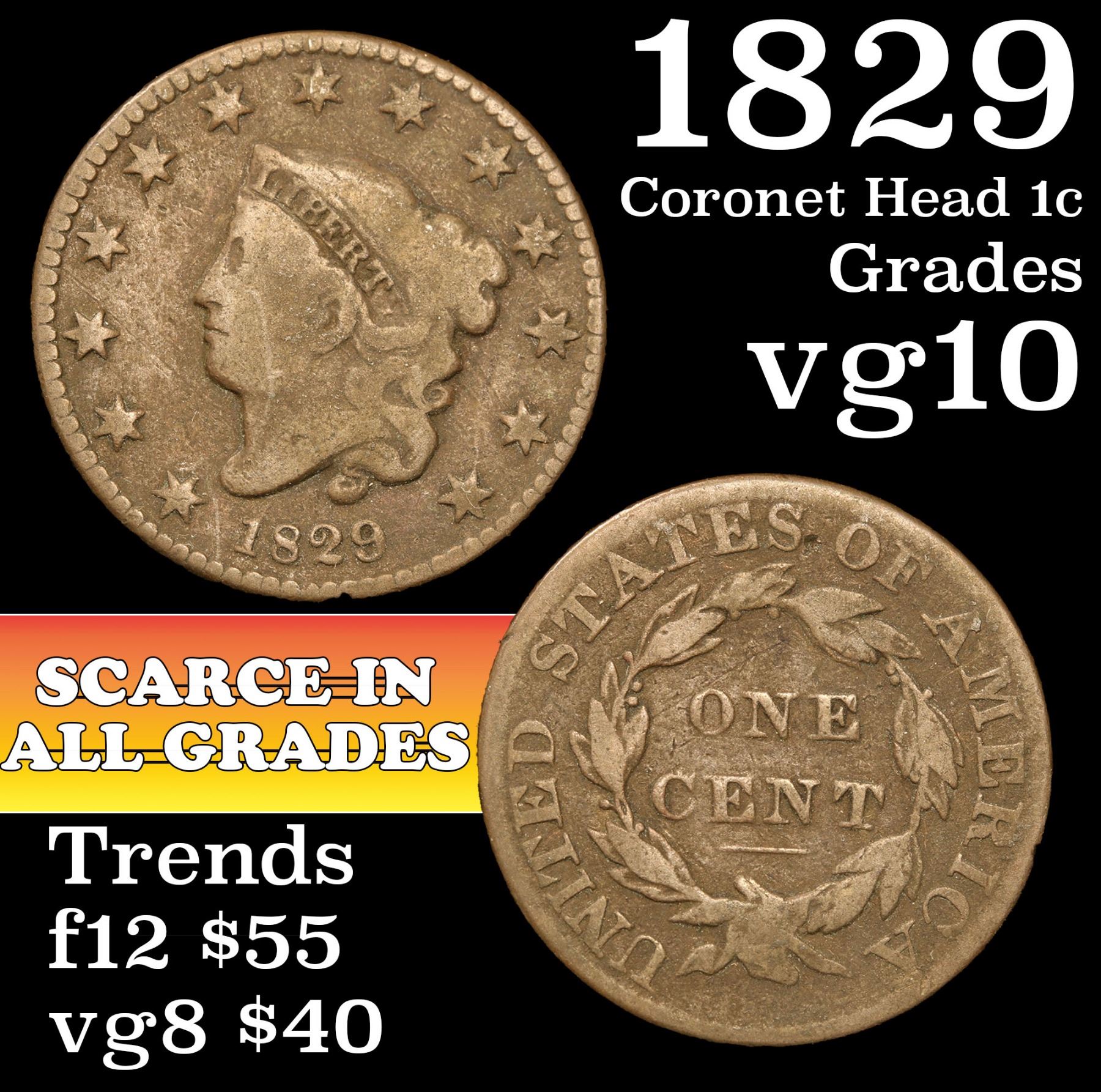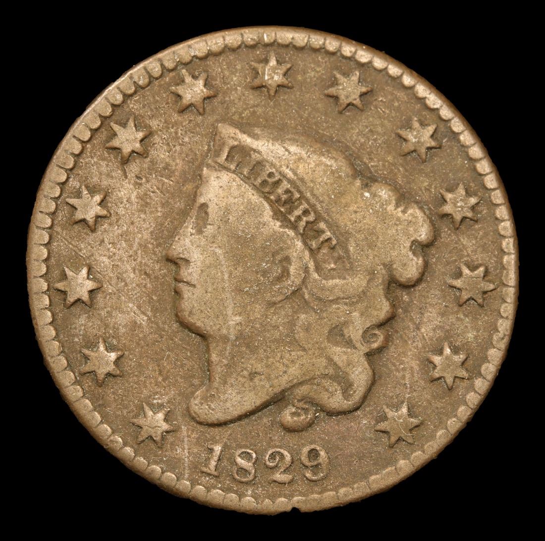 1829 Coronet Head Large Cent 1c Grades vg+.