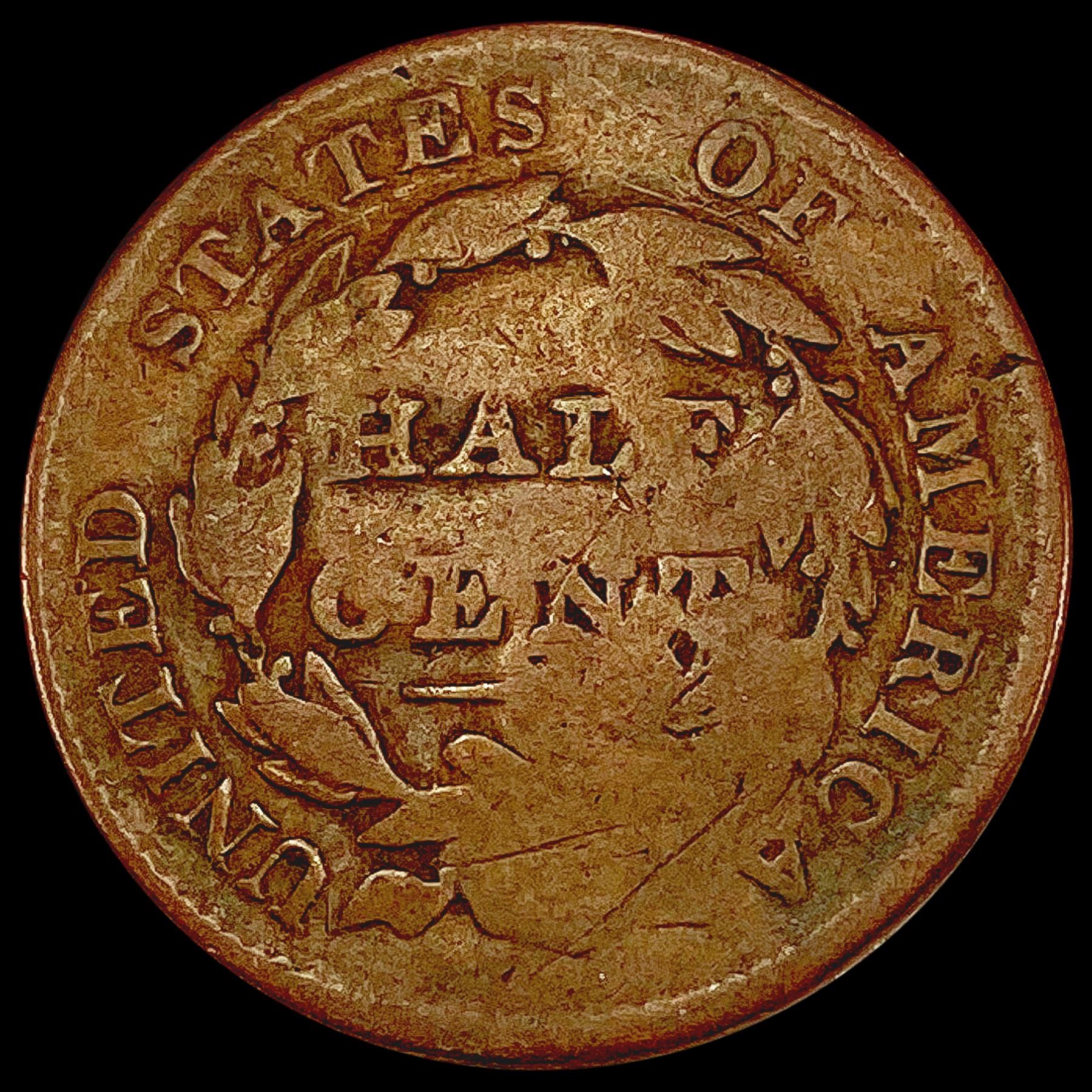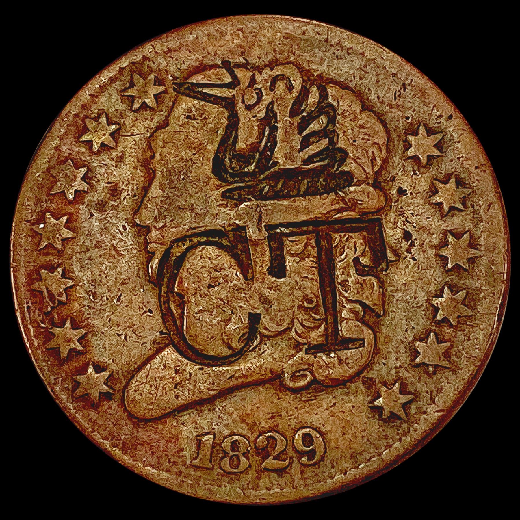1829 Counterstamped Classic Head Half Cent ABOUT UNCIRCULATED