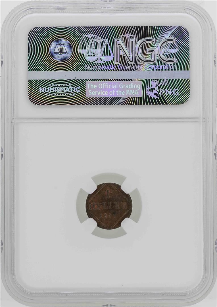 One 1829 Germany Bavaria Heller Coin NGC MS65RB. NGC Certified.