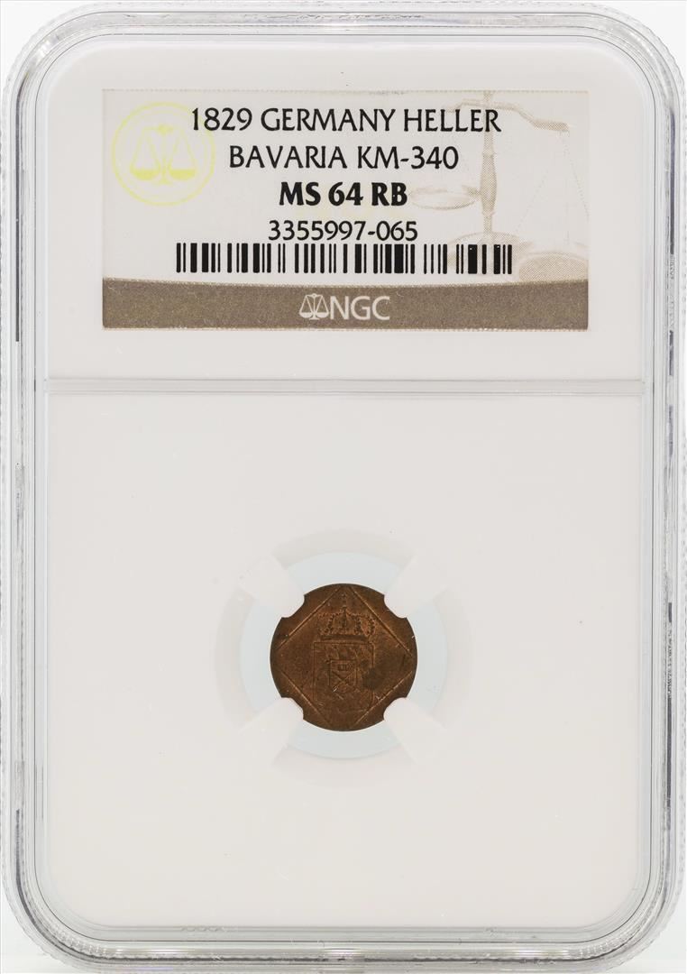 One 1829 Germany Heller Bavaria Coin NGC MS64RB. NGC Certified.