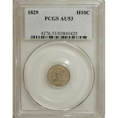 <B>1829 H10C AU53 PCGS.</B></I> PCGS Population (9/393). NGC Census: (12/473). Mintage: 1,230,000. Numismedia Wsl. Price for NGC/PCGS coin in AU53: $192. (#4276)<BR><BR><B>Coin Engraver:</B> William Kneass<BR><BR><b>Shipping:</b> Coins & Currency (<a target="_blank" href="http://www.heritageauctions.com/common/shipping.php">view shipping information</a>\)