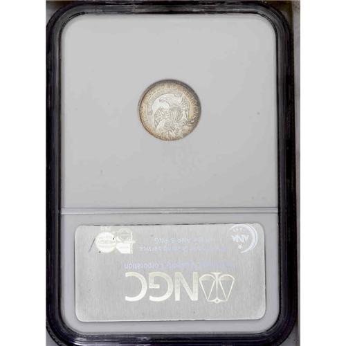 <B>1829<H10C> V-13, LM-4, R.3. AU58 NGC.</B></I> Early die state as always seen. Frosty and bright, with ample luster in the fields, and toned with peripheral gold. Faint scattered disturbances expected on a briefly circulated coin, none of any consequence. A fully struck, appealing coin to represent this variety.<BR><I>Ex: Cumberland (June, 1989).</B></I> Envelope Included.