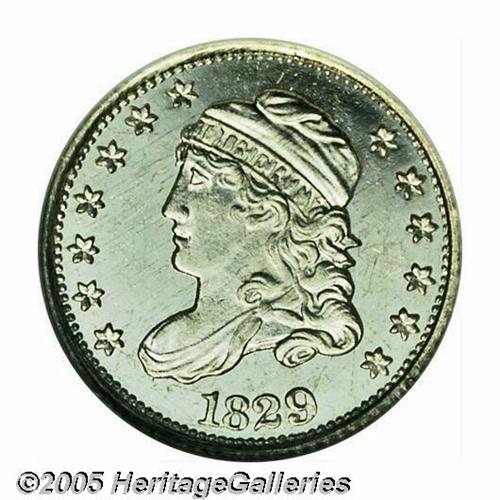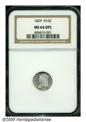 <B>1829<H10C> MS64 Deep Mirror Prooflike NGC.</B></I> LM-3, V-2, R.2. Untoned with little or no evidence of die clashing and enough watery reflectivity in the fields to warrant the seldom used DPL modifier. This more available die pairing was indeed used for the striking of proofs, perhaps explaining this coin's distinctive mirror finish. Population: 1 in 64 DPL, 0 finer (4/05).