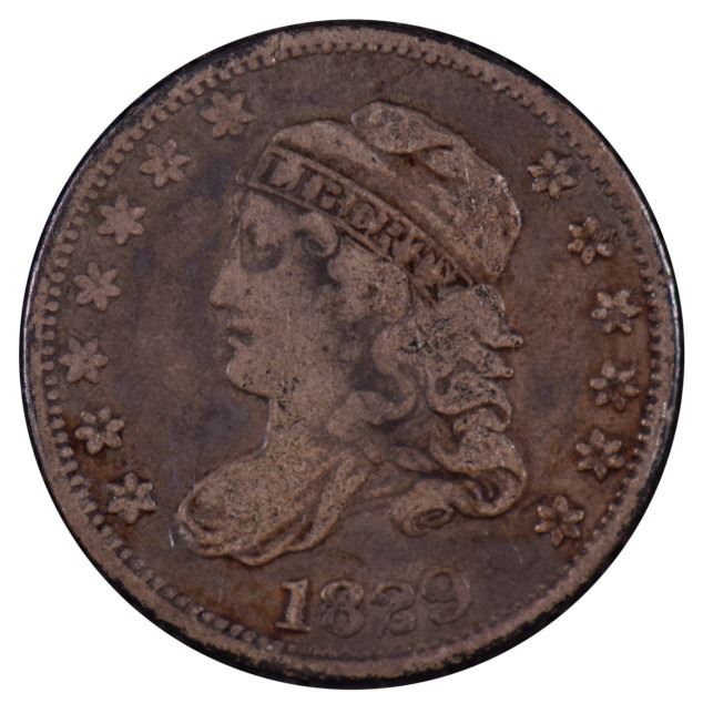 One 1829 Liberty Capped Bust Half Dime Coin.