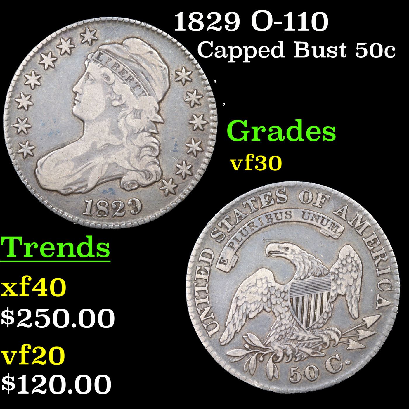 1829 O-110 Capped Bust Half Dollar 50c Grades vf++.