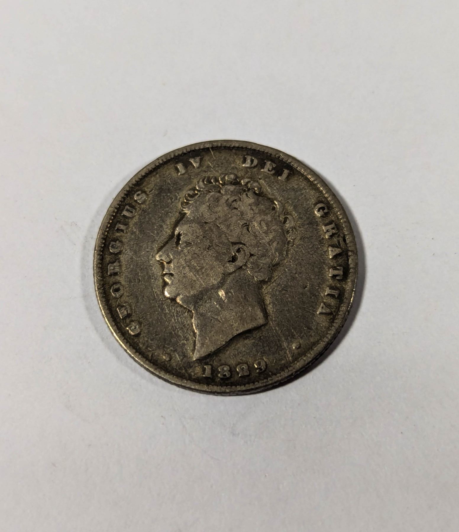 1829 SILVER GREAT BRITAIN 1 SHILLING COIN